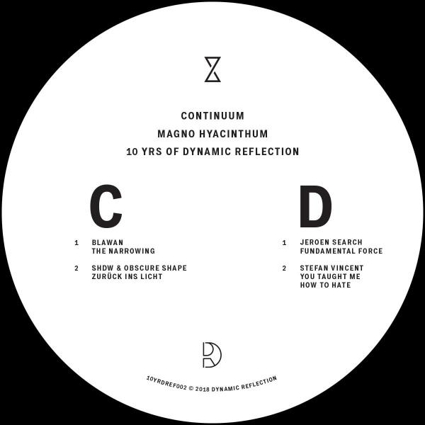 Marking its ten-year anniversary Dynamic Reflection is set to release Continuum, a collection of five uniquely intertwined EP's. The special series commemorates the label's roots, evolution and establishment and honors its residents and friends. The Continuum-series will feature twenty exclusive tracks. The EP's Sonos, Magno Hyacinthum, Fluctus, Luna Frigus and Terra Nova are planned as part of Continuum. Individually each will pay tribute to four distinct artists that have inspired and shaped the sound of Dynamic Reflection. Collectively they become the articulation of a decade of techno. Featuring tracks from Blawan, SHDW & Obscure Shape, Jeroen Search and Stefan Vincent, Magno Hyacinthum represents the second planet in the Continuum-constellation, consisting of five exclusive releases in celebration on the 10th anniversary of Dynamic Reflection.