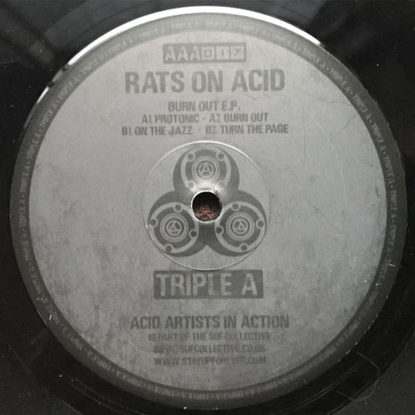 Imported from the UK !! Fantastic 4 track E.P. of slamming Acid Techno from Rats On Acid with classic 303 tracks on the A side and darker techno and trance inluences coming through on the B1 and B2.