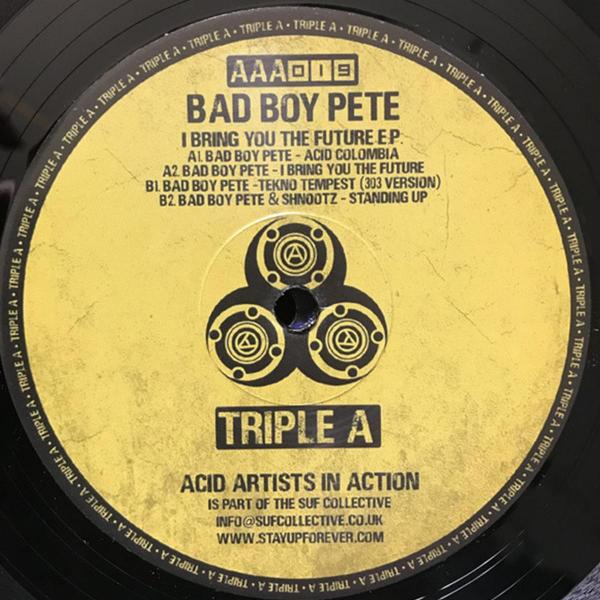 Imported from the UK !! Absolute killer EP of classic Acid Techno from Bad Boy Pete including the A1 track 'Acid Colombia' - being caned at the moment by Chris Lib - on Triple A (Acid Artists In Action)..