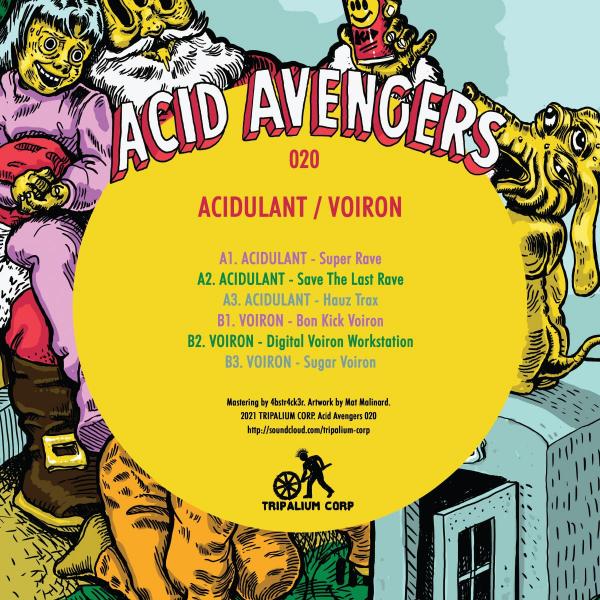 This new Acid Avengers EP is a diagonal trip from South-East to North-West of Europe. Malta-based producer Acidulant (Balkan Vinyl, Acidworx, Jack Trax) and Brittany-based producer Voiron (Nocta Numerica, Analogical Force, Rave or Die) join their forces and deliver a six-tracks EP combining UK rave, melancholic electro, catchy techno, oldschool breaks, and of course much TB-303. Rave on!