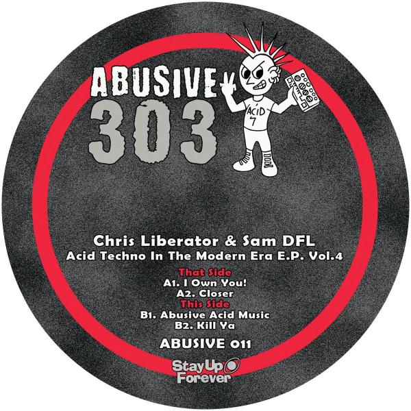 Abusive 303 continues its mission to bring the most deadly, twisted 303 Acid Techno music we can find to vinyl. Abusive 011 is volume 4 of Chris Liberator & Sam DFL's 'Acid Techno In The Modern Era' series, and these 4 tracks pack a serious punch, ranging from the menacing A1 track with it's Mexican drug lord samples, to the dark and driving A2, finishing off with the pounding, furious 303 frenzy of the B1 and B2 tracks... pure Acid Techno!!