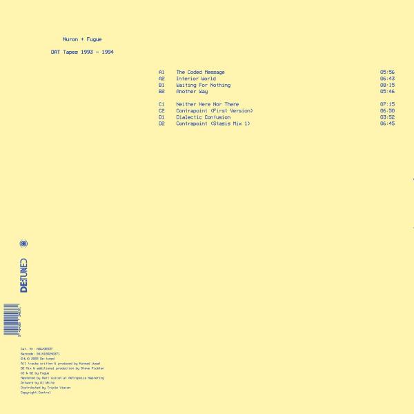 Nuron makes a spectacular return on De:tuned with a compilation of hidden treasures! Nurmad Jusat aka Nuron / Fugue, one of the originators of the UK emotive techno sound, went on a quest for archived material and unearthed a handful of DAT tapes with previously unreleased music from the early to mid 90s. The tracks offer a deeply melodic and unique masterclass. Nuron combines a pulsing four-on-the-floor signature beat of the traditional techno sound with his characteristic rhythm and harmony elements. Classic Likemind-esque material that comes with an exclusive Stasis remix of 'Contrapoint'. Essential purchase! Mastered by Matt Colton at Metropolis and pressed on 180 gr vinyl. Al White created all the graphic work. Stay tuned!