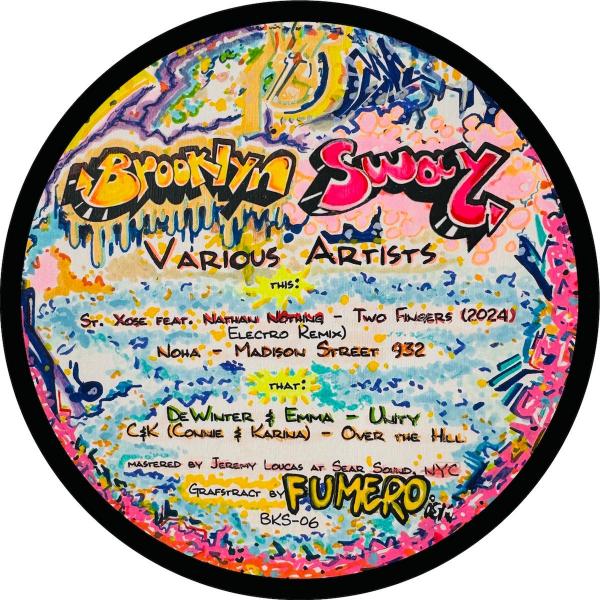 Now on our sixth release & going strong, Brooklyn Sway returns with a heady combination of local producers, further-afield figures and scene-setting interludes to get that real Bucktown mood, accompanied by bold new artwork from NYC "Grafstract" muralist Fumero. After words of wisdom from originator David Morales, St. Xose, patron saint of afterhours, re-rubs his own entry from BKS-01 into an electro flip with a forceful but smooth strut, Nathan Nothing's ephemeral vocals vanishing in spaces between steady bass pulses and broken beats. Those looking for late-night addresses check Noha's 'Madison Street 932', where the PanickPanick! label head proves his local cred with a funky, vocal sample-driven house jam equally at home on its eponymous street corner or somewhere later, darker, and preferably inside. Label regulars DeWinter & Emma return with 'Unity', the spoken word Spanish vocals interweaving with choppy snare patterns and a room-filling reverberating bass roar that hits paydirt when English vox and a kick hit late in its second half. C&K are local legends Connie & Karina, and while that may not be some punters' first guess for their moniker's meaning, the track is an exercise in restraint and class, jaunty house swathed in dub echoes and hand drums that positively sways when the trombone lead swings in to carry the tune.