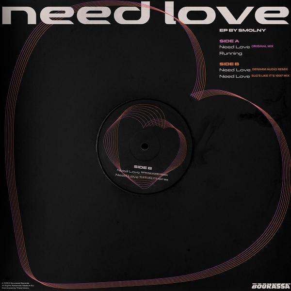 Bourassa is back and serving us a scorching new summer hit. This time, label boss Smolny doesn't hold back, unleashing a powerful holiday anthem titled "Need Love." If you're truly in dire need of some love, this track is definitely for you! It starts off slowly and nostalgically, seasoned with a distinct amen break. The growing tension sends shivers down your spine, while a beautiful trance chord intertwines with a long pad in the background. Adding to the flavor is a twisted female vocal that seductively flirts with your senses. It all culminates in a euphoric experience, gradually building up to release the accumulated energy. Finally, everything explodes as a strong and expressive bass line hits you like a ton of bricks. The following track "Running" takes a more tranquil approach, transporting us to a dreamy realm. Broken drums keep propelling us forward, never allowing us to pause. The melodic chord gracefully emerges, creating a chill atmosphere and setting the mood. After the breakdown, grooving bongos complete the picture. The B-side features two fantastic remixes of the title track, "Need Love." The first one is a fierce breakbeat roller from Denham Audio. With its powerful bass and mesmerizing droplets cascading in the background, it creates a distinct hypnotic atmosphere. The change in bassline to the typical speed garage sound delivers an even more potent punch at the end. The second remix is crafted by SLG, who flawlessly captures the sound of the '97s, creating a track in the progressive trance style from that era. A brilliantly composed bass line constantly propels the track forward, building tension alongside the melodic line. A real dance floor killer!