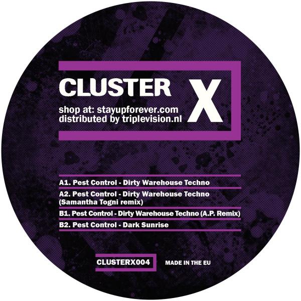 'Dirty Warehouse Techno' is a a speaker shredding classic from Pest Control which uses the Cluster records slogan to maximum effect! Rising star Samantha Togni creates a more pounding version on her remix, whilst Cluster stalwart A.P. streamlines the track in to a deadly weapon on his remix version. The EP ends with 'Dark Sunrise' another atmospheric warehouse pounder from Pest Control.