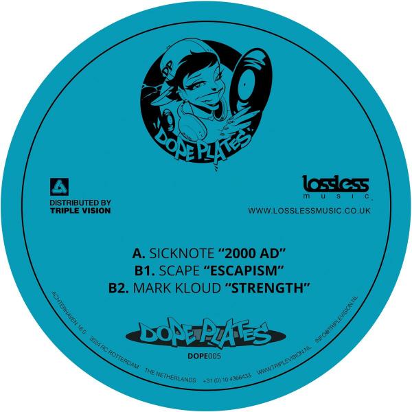 Dope Plates 005 brings retro flavours from some of the scenes freshest talent. North London based Sicknote delivers a beautiful rolling track called "2000 AD". East Asia based Brit Scape comes with some serious ambient amen pressure with "Escapism" and U.S producer Mark Kloud ends the release with his superb track "Strength".