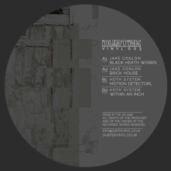 Jake Conlon - Black Heath Works Chugging, battering kicks settle the melodic three note loop and form a solid bottom end. Star of the show is the frantic, high pitched chime and marauding, fizzing distortion fit to mangle the head. Tinges of acid and delay tease out the overtones and harmonics, filtered tighter and tighter and finally released, letting the groove play on, relentless and slowly morphing back to the original pattern. Jake Conlon - Brick House Shades of Detroit in the intro, echoing, filtered percussion and a suggestion of the baseline to come. Heavy kicks and layered breakbeat obscure none of the soul, accenting and powering up the notes. Infectious percussion and glitchy melody fades in and out, setting the vibe and keeping interest high. You chase the focus, the second notes backed by a subtle, sparkling echo, was that an intake of breath? Hoth System - Motion Detector An extraordinary percussive workout. Chattering, accented snares lead into a sparse industrial arrangement with a skipping hat keeping the pace up high. A refreshing high bass note and a perfectly restrained sub keeps pace with the pummelling kicks throughout. A track where small changes have huge impact, complexity and intelligence emerging from what at first seems simple. Hoth System - Within an Inch The name says it all - the track is pinned to the floor by the monstrous kick and heavy, low bass bleeps. The melodic pattern has an echo of rolling birdsong, but it's a mutant alien form unseen by human eyes, building and morphing into an acid-tinged monster. Production is astounding - each part is clear as a bell with space to spare in the mix - while incisive percussion works front and centre, marking out the phrases, accenting the breaks, winding the tension taught as a tripwire.