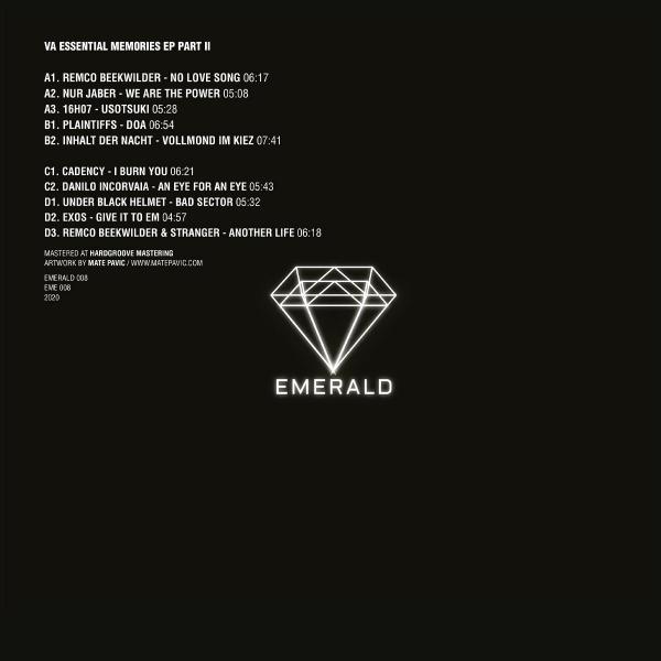 V/A - Essential Memories EP Part II is back by demand with the sequence. Presenting label affiliates and new artists on EMERALD with another 10 track compilation, all bringing their iconic sound.