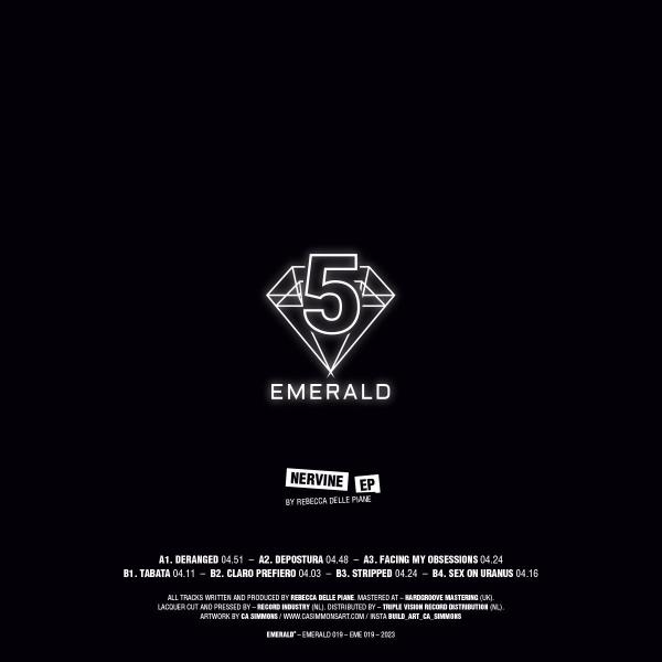 Rebecca Delle Piane arrives at EMERALD and takes front and center with her 'Nervine EP'. Free of form and executed with an oldschool approach in regards of feel and structure. She provides a spectrum ranging from strong stripped repetitive driven techno to soulful forwarding percussions and somewhat mysterious leaning cuts.
