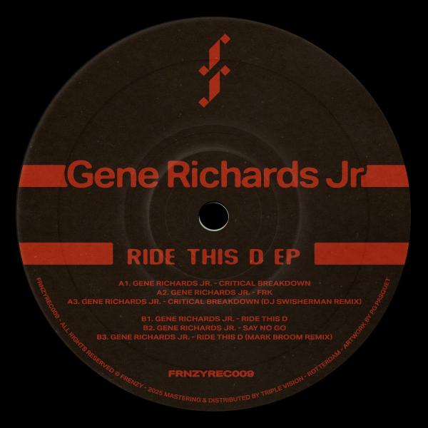 As 2025 unfolds, Frenzy wastes no time in unleashing its next chapter. For our ninth release, we welcome Ukrainian mastermind Gene Richards Jr. Known for his raw, uncompromising energy, Gene delivers a blistering 4-track EP rooted in ghetto-driven rhythms and industrial grit. This is no-holds-barred techno - pure, percussive, and primed for peak-time chaos. Titled Ride This D, the EP kicks off with four original tracks that showcase Gene's signature blend of punchy drum work and infectious vocal chops. The intensity only builds with two standout remixes: UK legend Mark Broom injects his classic mechanical funk into the title track, while Spain's rising phenomenon DJ Swisherman brings an electrified bounce that reimagines the groove through his distinct, playful lens. From shadowy warehouse floors to open-air summer raves, Ride This D is designed to detonate.