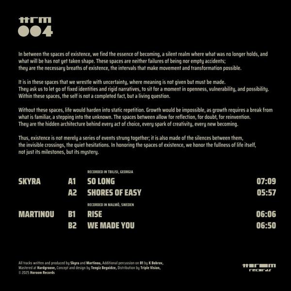 HRM004 [printed sleeve] Martinou / Skyra Record label Horoom Records Catalog Number HRM004 Release Date January 30th 2026 Genres Techno Tracks playpostitleartistsdurationplay_circle_outlineA1So LongSkyraplay_circle_outlineA2Shores Of EasySkyraplay_circle_outlineB1RiseMartinouplay_circle_outlineB2We Made YouMartinou .
