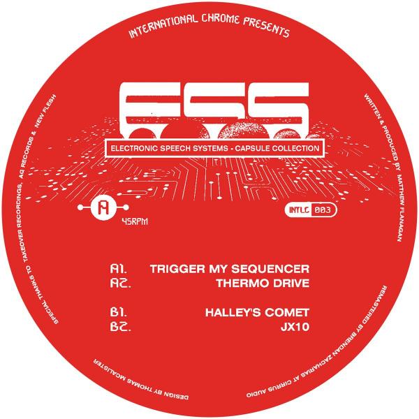 ESS - Sometimes we need to revisit the past to discover the future. That's why we are so happy to present the incredible Electronic Speech Systems 'Capsule Collection' (by Dublin's electro modular warrior DeFeKT). A selection of his finest works from his three only releases in 2011 on 'New Flesh', 'Takeover Recordings' & 'AC Records' have been remastered to form an electro tour de force. We pull the trigger with his deadliest of weapons 'Trigger My Sequencer'. A full throttled four-to-the-floor doppler dance werk out. The expelling of his drexciyan demons continues with the polar cap melting 'Thermo Drive', a deep dive into aquatic funk & electro dub waves. On the flip, slicing chord stabs and pulsing signals launch us back into the milky way with 'Halley's Comet'. The fusion of Kraftwerk inspired grooves & pulsing alpha juno synth lines pair perfectly to make it a certified electro cult classic. Lastly JX10 brings it home with a beautiful arrangement and showcase of perfectly executed electronic architecture, leaving us speechless. [limited run of 80 copies with the wrong rpm listed on the label]