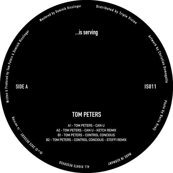 Berlin-based artist and label head Tom Peters returns to his techno-focused imprint ...is serving with IS011 - CAN U, a refined four-track vinyl-only release that channels groove, hypnosis, and physical intensity in equal measure. The EP opens with "CAN U", a deep yet propulsive cut built around metallic percussion,textured synths, and a haunting vocal hook. Its stripped precision and subtle emotional charge reflect Peters' evolving sound-somewhere between warehouse minimalism and ate-night transcendence. Ketch, from the SYXT collective, reimagines the title track with raw drive and rhythmic precision. His remix sharpens the low-end punch while unfolding layers of atmospherictension that feel both industrial and intimate. On the flip, "Control Conscious" dives deeper into Tom's hypnotic palette-dark, groove-heavy, and cinematic in its design. Steffi's remix closes the EP with her signature blend of deep techno and Detroit-infused swing: warm chords, tight percussion, and a dynamic arrangement that nods to bothemotion and functionality. Pressed on 140g black vinyl in a limited run of 300 copies, CAN U EP encapsulates the core spirit of ...is serving-techno with groove, depth, and emotional intelligence.