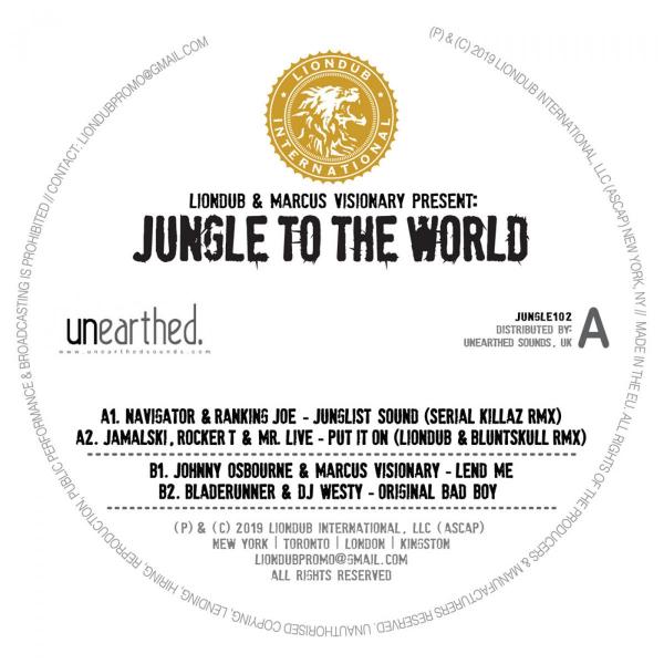 In celebration of Liondub International s 10 year anniversary, NYC s Liondub selected the top tracks from the Jungle To The World series and compiled them into limited edition 12 vinyl releases exclusively for Unearthed Sounds. Volume 2 includes an incredible array of artists and producers including: Bladerunner, Serial Killaz, Marcus Visionary, Reggae Legends Johnny Osbourne & Ranking Joe, MC Navigator, Jamalski, Rocker T, Liondub, Bluntskull, and DJ Westy. Guaranteed to move fast, this LTD 12 contains 4 tracks that been tried and tested on radio and in the clubs.