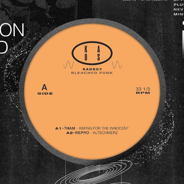 - 2023 repress - 2x February Griessmuhle closing party, it was a Monday during the day I had a hard weekend but I know the last party from Griessmuhle is still running (one day longer already) I ended up playing that night because Tham made the closing with the other synoid resident Acierate in B2B. We ended up doing an eternal afterparty at my place until Wednesday morning when he showed me this track and immediately closed it for KAOS. Following this iconic moment in the history of contemporary Berlin club culture. Alexander Repro strikes the third tune on KAOS being the first one to made it to such a number. This techno-trance cinematic bomb will make the basements and warehouses shake whenever they let us rave in them. The Soundtrack for the post-corona movement that we all hope is about to come. Stealing the show with his first appearance, you may have heard of him with his continuous prolific bomb outcome in Lobster Theremin, his classy Eurodance edits or his mighty U4E compilation. One of the most talented out there right now. And we will hear much more from him soon. Warm welcome to Julian Muller with a song dedicated to his mother Nancy. Keep the fire bro! Closing the record, one of the classiest of its kind, Binary Digit post-melancholia around 150BPM acid that will make you feel as hopeful as happy and as sad. Feelings overload. In pure Herrensauna fashion, wearing DIY decolored pants I type: "this is bleached punk" for disc-jockeys and collectors.