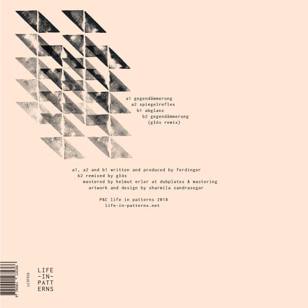 Building on the mission statement that was Ferdinger's debut album 'Gelande', comes 'Abbild', a 4 track EP and the second release on his 'Life In Patterns' label. The tempos are tweaked up and the sounds are honed and angled for maximum effect. 'Gegendammerung' is straightforward but manages a lyrical tilt, while 'Spiegelreflex' oscillates between moments of dry precision and epic dreaminess. With Abglanz the newly Paris based producer brings things back to the geological strata that characterized 'Gelande' - but now with a rawer edge and more reflective surface. Glos's remix of 'Gegendammerung' provides ambient and analogue textures, finishing the EP on a more introverted and melancholic note whilst maintaining the mechanistic drive of the other pieces.