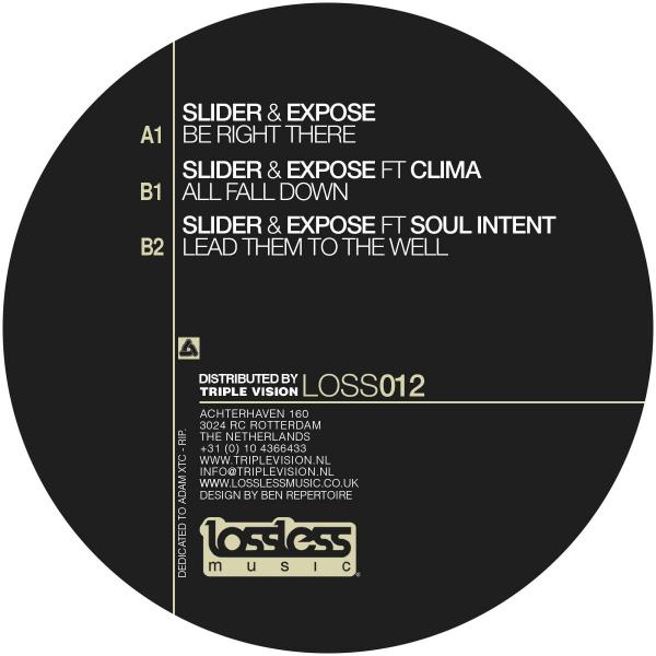 Slider & Expose are no strangers to Lossless, having featured on Versus Volume Four with their disgusting weighty dub soaked track "Sound Sistem". For their first full release on Lossless the brothers from Hull bring proper rave vibes with "Be Right There" which mixes well into pretty much anything. "All Fall Down" featuring Clima is a proper roller that would sound right at home on a Metalheadz release. Bringing the EP to a close the siblings from "the North" team up with label boss Soul Intent for a beautiful yet edgy 6 minutes of pure underground drum and bass that's turned the heads of some of the scenes most respected selectors.