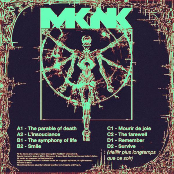 Dark yet bright, martial yet emotional, the first album by Lyon-based producer Rabbeat thrives on contrast. Hardcore becomes a narrative tool: a parable of life, woven with the hypersensitivity central to MKNK's identity.