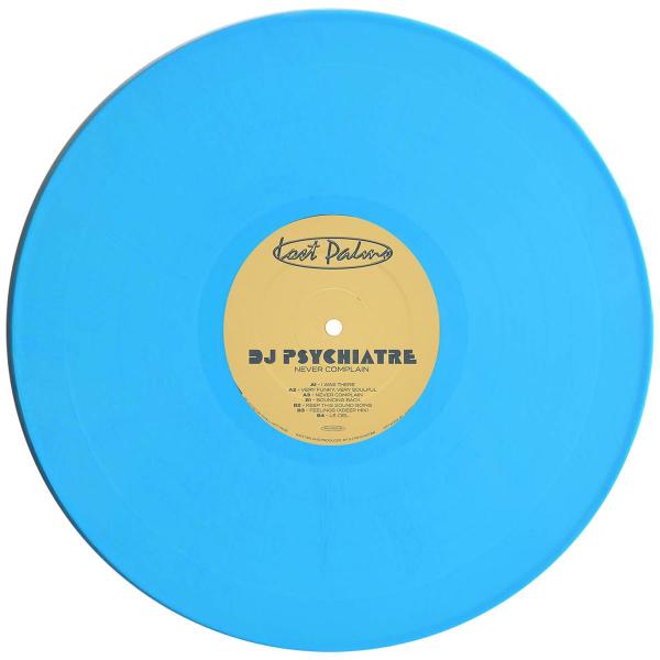 - 2024 repress / blue marbled vinyl comes in generic sleeve - Shall Not Fade sub-label Lost Palms welcomes DJ Psychiatre (Sylvain Creton) to its cadre for an extended EP of hypnotic house, following on from his stellar contribution to Shall Not Fade's 5 Years compilation. The enigmatic French producer has always let his music speak for itself, and on Never Complain he cures lockdown blues with a collection of tracks that are uplifting and carefree. DJ Psychiatre channels classic deep house and laid back, sultry vibes across the record. "I Was There" is built around a funky bassline but isn't overstated, tempting the listener in with swirling synths. In contrast, "Very Funky, Very Soulful" is exactly that: a grooving number that gets your hips moving. Genre-hopping, Creton then presents us with a rigid techy number in "Never Complain", still making way for some dusty soulful chords in a callback to his lofi roots. On the B-side, "Bouncing Back" ups the tempo - pacey and danceable hard-hitting house. "Keep This Sound Going" is a swinging piece, somewhere between lounge jazz and house music for the early hours, and there's some old-school deep tech stylisation in the infectious bassline of "Feelings - Xdeep mix". Seductive whispers that tempt the dancer give way to a syncopated rhythm and funky, slapping bass in the record's climax, "Le Ciel". With an elongated 303-laden outro, it's as if Creton doesn't want the music to end - and neither do we.