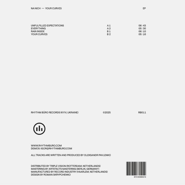 Na Nich returns to his roots after a series of successful releases on respected labels such as Delsin, Semantica, On Board, and Fur:ther Sessions. The Ukrainian producer's latest EP pays tribute to his foundation in broken beats and bass music - the core of his craft before adopting the Na Nich moniker. Co-founder of Rhythm Buro and formerly known as Sunchase, Oleksandr Pavlenko shifted from his decades-long bass music career towards house and techno about ten years ago. Yet those early influences never truly disappeared. On Your Curves, Oleksandr skillfully blends his bass- heavy legacy with the sonic palettes characteristic of his later work, merging two worlds into a cohesive sound. The A-side opens with 'Unfulfilled Expectations', a deep roller rich with bass textures and mellow synths. It's followed by 'Everything', a slow burner infused with '90s vibes, featuring old- school vocal samples and a drum pattern reminiscent of UK garage. On the flip side, 'Rain Inside' delivers the EP's grooviest moment, with broken beats crafted for the dancefloor and an intimate, close-your-eyes 4 a.m. mood. The title track, 'Your Curves', closes the EP with a deep and melancholic atmosphere. This release stands out amid contemporary offerings, reminding listeners that essence always triumphs over form.