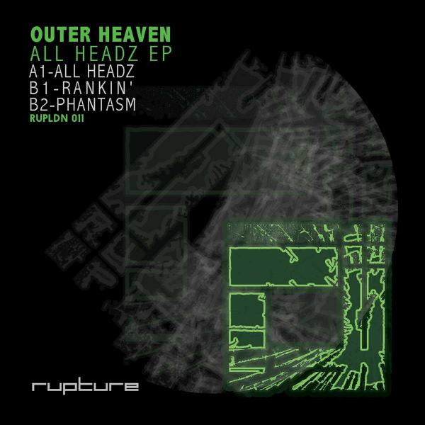Rupture continues it's premier role in resurrecting and redefining jungle for the twenty-first century. Newcomer Outer Heaven joins the label's roster for their eleventh release, a hefty three-track EP full of dubbed-out atmospherics, cracking breaks, and contemporary productions techniques. The winds of jungle-past blow across the sparse landscape of "All Headz" - a screw-faced, dread-laden amen workout that leaves just enough breathing room between assaults for the dance to catch its breath before being pulled back into the swirling undertow. Menacing notes hang in the air of this hazy soundscape, punctuated by warped mic chatter and vintage samples. On the flip side, "Rankin" quickly elevates the system with a hypnotic cut of Afrofuturism dripping in thick, resonant vibes. Precision bursts of acidic fire cut through the smoky atmosphere, leaving room for cascading avalanches of amen fury, while pressure only builds again through the linear repetition of the vocal sample. "Phantasm" begins with a fog of melodic atmospherics that quickly drifts across a heavy, mechanical drum pattern. A savage, organic rhythm emerges, bolstered by hoovering stabs and jangling effects. Although completely unrelenting after the first drop, this closing track never loses its groove.