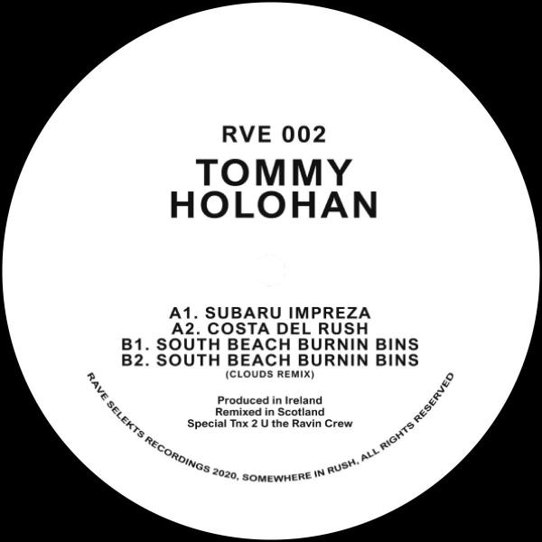 Rave Selekts' second release brings back Tommy Holohan's infamous rave track "Subaru Impreza" finally to be pressed onto wax. Holohan also brings back "Costa Del Rush" an old school early 2000s inspired techno piece and "South Beach Burnin Bins", a peak time jungle influenced banger with a remix by the headstrong duo, Clouds.