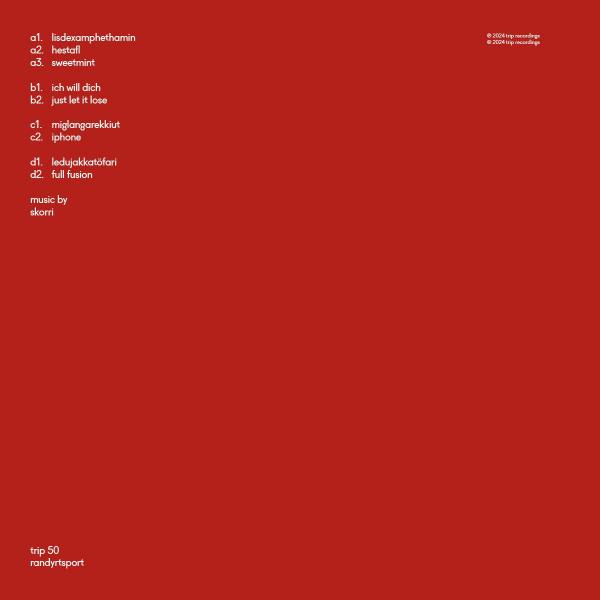 skorri is an icelandic producer and performer. following his contribution to "hot steel: round 3", "randyrtsport" is his solo debut on Trip and a deep dive into the indulgent world of sound he crafts so meticulously. randyrtsport, named after 'dyrt sport', an icelandic saying meaning an expensive hobby, explores this theme; each track showcasing the high stakes and rich rewards of skorri's audio adventures. "randyrtsport" stands as a compelling body of work featuring 11 bangers from a producer who views his craft through the lens of lavish auditory explorations.