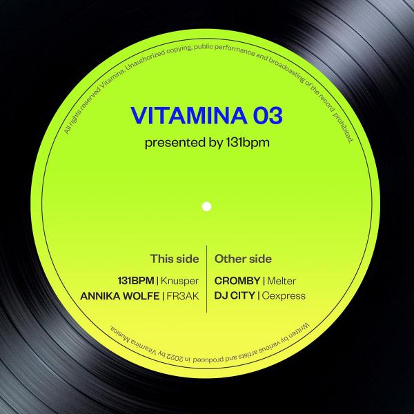 Vitamina gives back energy with the 3rd Vinyl, this time presented by his resident dj. 4-track club-ready to make you sweat on the dance floor: get ready for some jacking snares, electric basslines and steamy vocals. Tracks from Cromby, Annika Wolfe, DJ City and 131bpm.