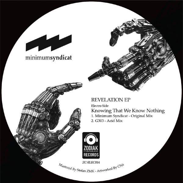 Marking their first release on Zodiak Commune Records, Minimum Syndicat unleashes the Revelation EP, a powerful showcase of electro on the first side and acid techno mastery on the flip side. Featuring the hypnotic electro-driven "Knowing That We Know Nothing" and the collaborative acid techno powerhouse "Disclosures" with Voiron, this EP is a bold statement. Belgian acid virtuoso G303 transforms "Knowing That We Know Nothing" and "Disclosures" into high-octane journeys, layering hypnotic 303 acid lines, pulsating bass, and intricate rhythmic structures. A definitive release for fans of deep acid grooves and cutting-edge electro!